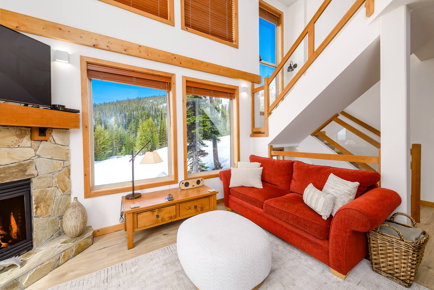 Wake up slope-side in this stunning end unit townhome at Big White! Bright, spacious, and packed with perks including a private hot tub, gas fireplace, ping pong table, and epic mountain views. Lounge in the cozy den with a big-screen TV, dine with a view, and cook like a chef in the fully stocked kitchen. The luxe king suite has its own balcony and spa-style bath. Right off the Perfection Run. Your alpine escape starts here!